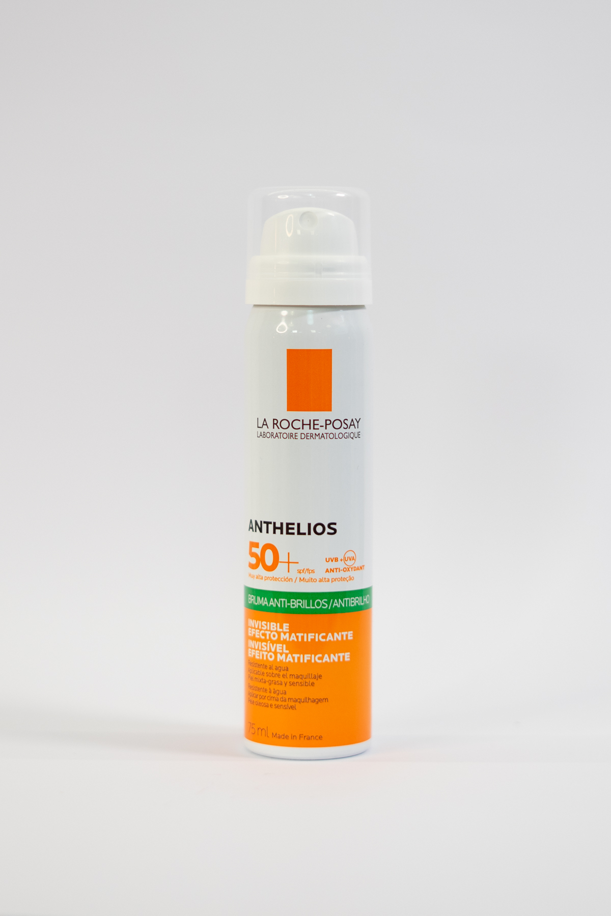 Protege tu piel del sol sin renunciar a un acabado fresco y sin brillos con Anthelios SPF 50+ Bruma Anti-Brillos de La Roche-Posay. Esta bruma ultraligera ofrece una protección muy alta frente a los rayos UVA/UVB y a las agresiones externas, manteniendo la piel mate y sin sensación grasa durante todo el día.