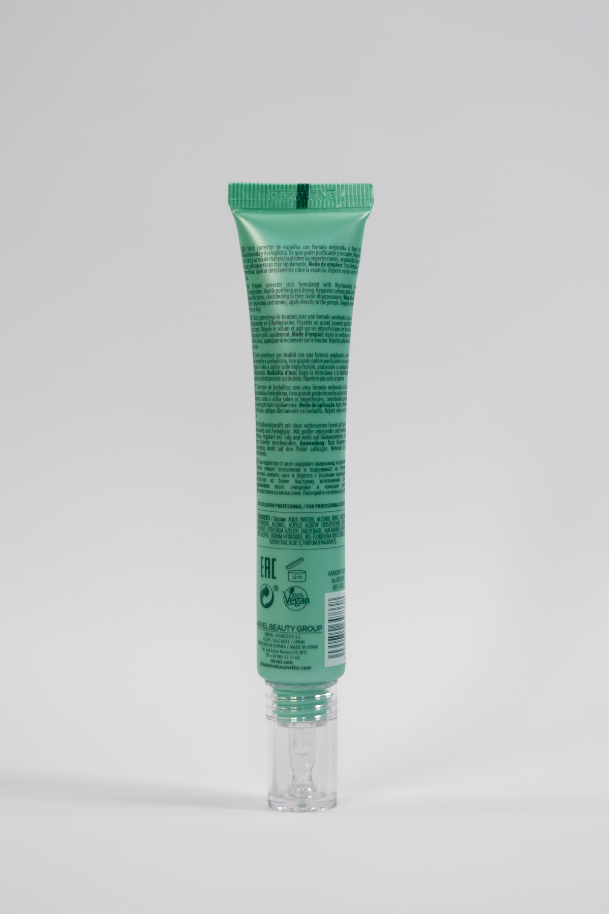Gel corrector de espinillas con Niacinamida y Azeloglicina. De acción purificante y secante, regula el exceso de sebo y actúa localmente sobre las imperfecciones, ayudando a que desaparezcan más rápidamente. Formulado con un 97% de ingredientes naturales según la norma ISO 16128.