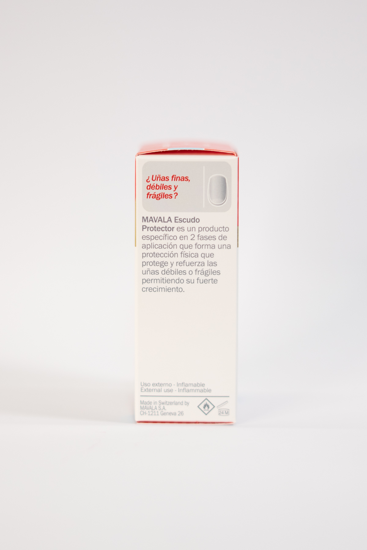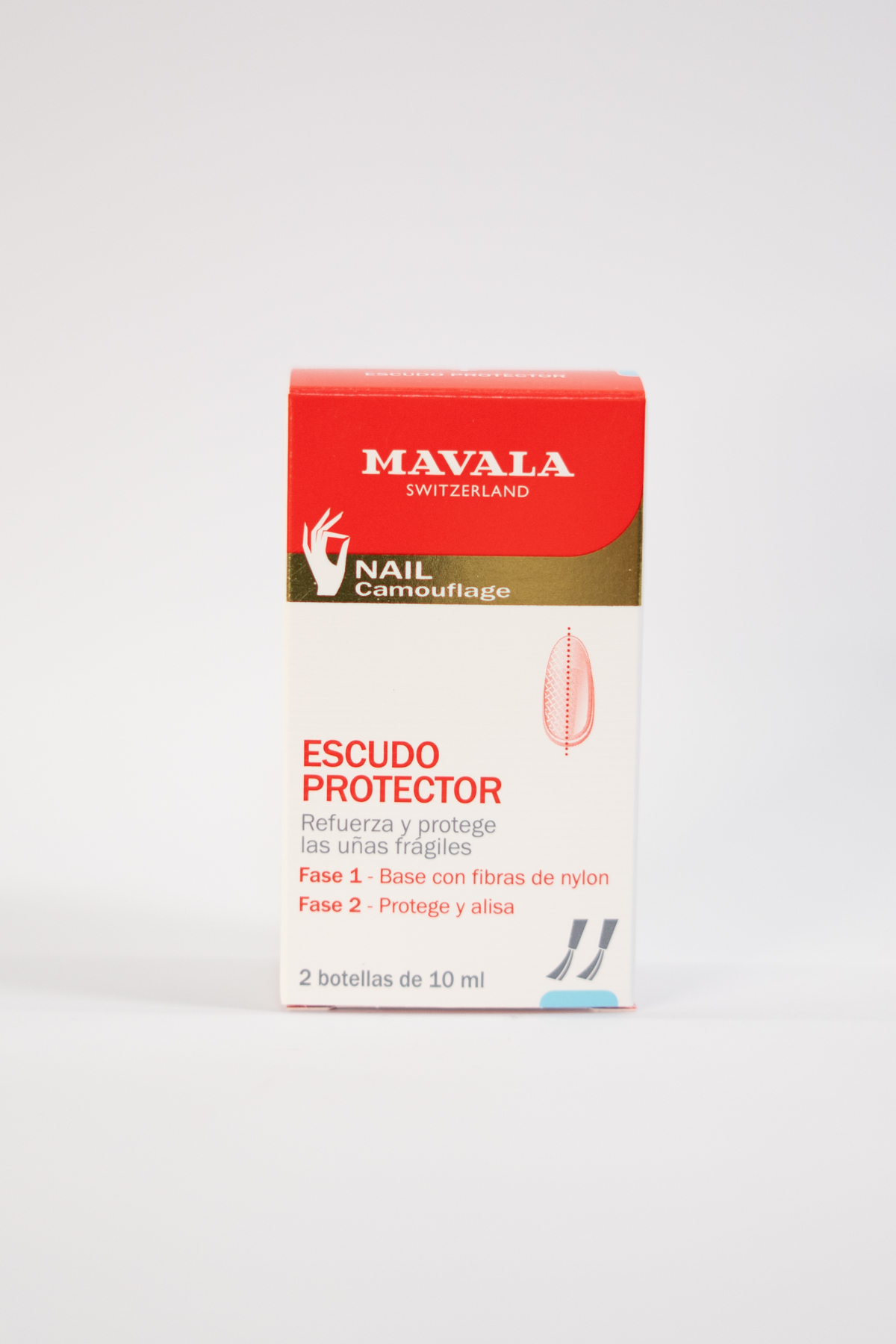 El Escudo Protector de la marca Mavala ha sido diseñado como un sistema de cuidado integral para uñas que presentan debilidad, finura o tendencia a romperse. Su formato en dos fases actúa mediante: